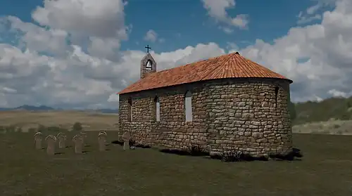 ![]() Reconstrucción de la ermita, lado de la puerta | ||