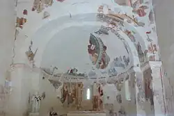 El ábside está construido en piedra de sillar bien trabajada. Es un raro ejemplo de construcción lombarda por estas tierras en que no se da otro caso igual. Presenta unos arquillos ciegos lombardos labrados de 3 en 3 y separados por columnas que no son monolíticas y que sustituyen a las tradicionales lesenas y un friso en esquinillas típicamente lombardo. Esta ornamentación se une al ajedrezado jaqués.