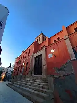 La torre campanario está construida con sillería de ladrillo, una técnica constructiva poco frecuente en la arquitectura de la ciudad. En la parte superior se abrirían dos espacios por cada cara a modo de vano y sobre ellos un arco, entre ellos vemos molduras corridas que se repiten en las cuatro caras. La estructura queda rematada con una cubierta piramidal de madera, pero que está revestida por láminas metálicas.