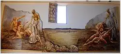 Cada retablo está dividido en tres partes. La central está dedicada a la “Transición de San Roque” y cada una de las partes laterales representa una escena de la vida de San Roque. Respetando la tradición y los valores iconográficos propio del santo, el artista aportó su visión contemporánea aplicando su propio estilo y simbología y ahondando en las características paisajísticas: tierras áridas que marcan el carácter y la vida de sus habitantes. El resultado es una simbiosis entre tradición y actualidad que refleja la parte más metafísica del santo en concordancia con el estilo de su autor.