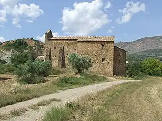 Está situada poco más de 400 metros al noreste del pueblo de Aramunt Vell, al pie de la pista que desde las Eras lleva al antiguo pueblo.