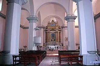 ![]() Detalle de la nave central con el presbiterio al fondo (2017) | ||