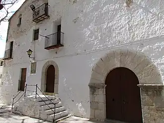 El templo tiene unos 32 metros de largo por 6,80 de ancho en la parte de delante y sólo 4,60 en la de atrás. La fachada es sobria pero majestuosa y está totalmente blanqueada. La puerta de acceso es un arco de medio punto construido de sillería y el resto es de mampostería. Está coronada por una doble espadaña construida en 1743, con campanas que sustituyeron la antigua gran campana que ya había en 1547. En el interior, sobre la puerta de entrada se encuentra situado en el coro y, detrás del altar mayor, la sacristía de reducidas dimensiones.