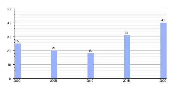 | Gráfica de evolución demográfica de Ernes (aldea) entre 2000 y 2020 |