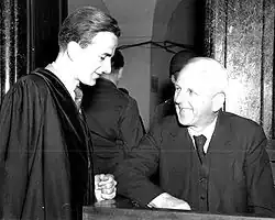 - ↑ «Ernst von Weizsäcker». die Zeit (en alemán). October 19, 1950. Consultado el 29 de enero de 2015. «This is the first case in which a convicted at Nuremberg obtained his early release not thanks to "good behavior", but after an in-depth examination of his case by the Legislative Affairs Office of the US High Commissioner.»