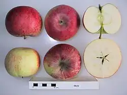 - ↑ Hampson, Cheryl R.; Kemp, Henk (2003). Apples. Botany, Production and Uses, ed. Characteristics of Important Commercial Apple Cultivars. CABI Publishing. pp. 62. ISBN 0-85199-592-6.