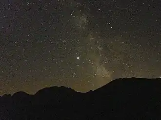 1 Ubicación con cielo oscuro excelente   negro   7.6 – 8.0 La Luz zodiacal, gegenschein, y banda zodiacal son visibles; M33 es visible a simple vista sin problemas; las regiones de la Vía Láctea de las constelaciones de Escorpión y Sagitario proyectan sombras en el suelo; Júpiter y Venus afectan a la adaptación a la oscuridad del ojo, y es imposible ver los alrededores.