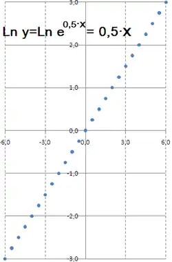 Es decir, al trazar una función exponencial en una escala semilogarítmica (equivalente a representar ln y frente a x en ejes con escalas lineales) se obtiene: , que es una línea recta.