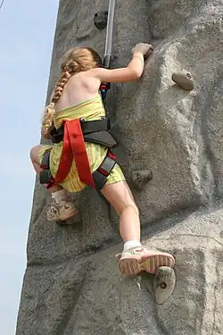 La escalada es una actividad que consiste en realizar ascensos sobre paredes, valiéndose de la fuerza física propia. Se considera escalada todo ascenso con las extremidades inferiores (pies y piernas; en algunos casos también se podría llegar a utilizar la rodilla, por si hubiera alguna pared al lado) y las extremidades superiores (brazos y manos). En la escalada hay alturas que implican un peligro considerable y con el objetivo de tener seguridad se utiliza equipo de protección.