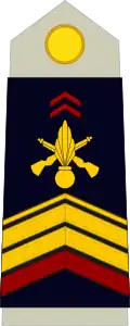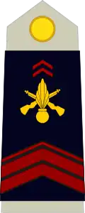 | Suboficial Mayor | Subteniente | Brigada | Sargento primero BM2 | Sargento primero | Sargento | Cabo mayor | Cabo primero | Cabo | Soldado de primera | Soldado | |||||||||||||||||||||