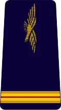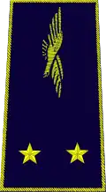 | General del Ejército Aéreo | General de Cuerpo Aéreo | General de División Aérea | General de Brigada Aérea | Coronel | Teniente Coronel | Comandante | Capitán | Teniente | Alférez | ||||