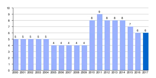 | Gráfica de evolución demográfica de Escanzana[5] entre 2000 y 2017 |