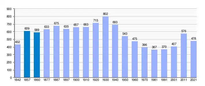 | Gráfica de evolución demográfica de Santa María del Tiétar[10] entre 1842 y 2021 |