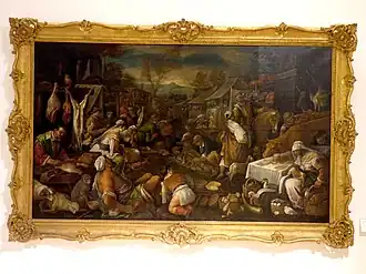 Se trata de un óleo sobre tela que muestra una summa de variados personajes, los cuales se encuentran en posturas particulares. Es posible apreciar también comida, animales, objetos de uso diario, etc.; mostrando a su vez la rústica y dura vida de los campesinos. El pintor parte de esquemas compositivos que aprendió de su padre, Jacopo Bassano, y que también se pueden apreciar en obras como Estaciones, Elementos, Adoraciones y Escenas bíblicas. Falomir señala que se trata de escenarios naturales con "personajes ocupados en tareas cotidianas y repletos de animales y objetos tratados con pretendido realismo".[1]