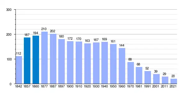 | Gráfica de evolución demográfica de Escobosa de Almazán[2] entre 1842 y 2021 |