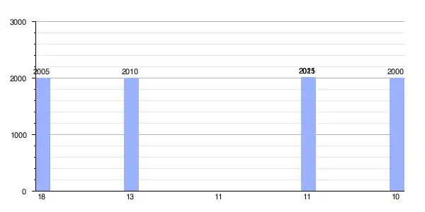 | Gráfica de evolución demográfica de 2000 entre 18 y 10 |