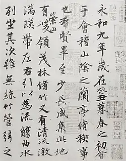 ![]() Fragmento de Prefacio a la colección de poemas compuestos en el Pabellón de las Orquídeas, conservado en el Museo del Palacio ubicado en la Ciudad Prohibida | ||