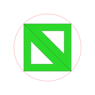 La escuadra tiene forma de triángulo rectángulo isósceles. Es obvio que dos escuadras iguales, colocadas juntas por la hipotenusa, dan como resultado un cuadrado.