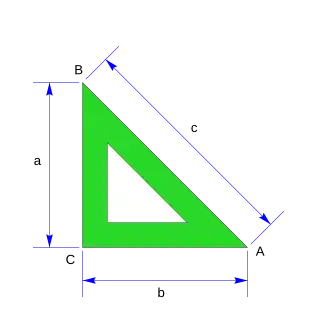 Los catetos de la escuadra son los lados del cuadrado, y la hipotenusa es la diagonal; las proporciones entre los catetos y la hipotenusa vienen determinadas por esta relación.