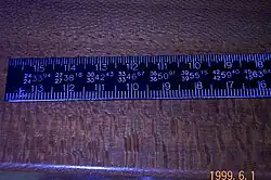 - Longitud real de limatesa o de limahoya por pie en planta de la viga común. La viga de limatesa o limahoya también conecta la cumbrera a una pared, pero se encuentra en un ángulo de 45 grados con la viga común. Este número da la longitud de la viga de limatesa o limahoya por cada diecisiete pulgadas de recorrido horizontal de la limatesa o limahoya (17 porque , siendo la medida de la hipotenusa de un triángulo rectángulo con ángulos de 45 grados cuyos catetos miden 1). Esto implica utilizar la medida en planta de la viga común, pero evita la necesidad de medir la limatesa o limahoya en planta.