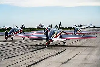 A pesar de que incluso la ENAER propone una versión especial del Pillán para el equipo acrobático, se decide el uso de una aeronave especializada, el Extra 300 de origen alemán.