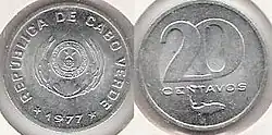 Después de la independencia, las monedas se emitieron en 1977 en denominaciones de 20 y 50 centavos, 1 2 y 1/2, 10, 20 y 50 escudos. Las monedas de 20 y 50 centavos eran de aluminio, la de 1 y 2 y 1/2 escudos eran de bronce y níquel y las otras denominaciones, de cupro-níquel.