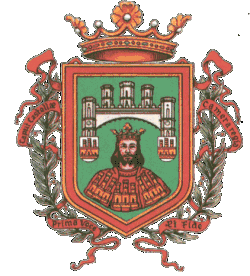 - en la primera partición, en campo de plata, medio cuerpo de rey coronado de oro con corona abierta, rostro de carnación y con dalmática de gules cargada con tres castillos de oro; bordura de gules cargada con dieciséis castillos de oro;