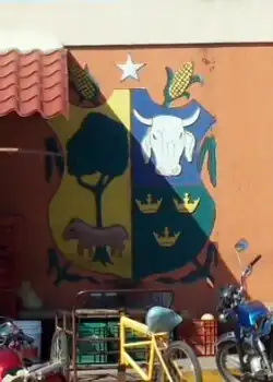 A la derecha el escudo está dividido en un sector superior azul y un sector inferior verde; en el primero se aprecia la cabeza de un toro, simbolizando la producción ganadera del municipio, en la parte inferior se pueden ver tres coronas de reyes que corresponden a los bíblicos reyes de oriente que visitaron al niño Jesús y cuya fiesta se celebra anualmente en la localidad.[1]