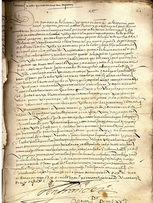Otorgado por el 5.º. Virrey del Perú el 2 de agosto de 1575 en Arequipa, después de haber visitado la Villa Imperial de Potosí.[2]