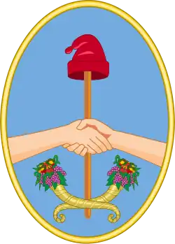 | Blasón | Similar al escudo nacional, con una cornucopia o cuerno de la abundancia debajo | |