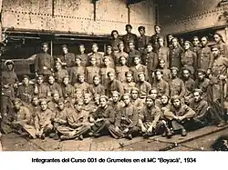 La primera escuela de formación de Suboficiales navales fue fundada el 20 de abril de 1934 por decreto No. 853 a bordo del vapor MC "Boyacá" surto en Puerto Colombia y se llamó "Escuela Marina para Maquinista y Grumetes".