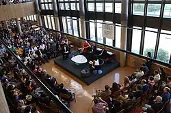 El 22 de octubre de 2015 se celebró en la Biblioteca del Aulario Norte una mesa redonda con la participación de Wikipedia, Premio Princesa de Asturias de Cooperación Internacional. La conversación se centró en los emprendedores digitales y sociales, teniendo como base la propia historia de la Wikipedia. Intervinieron Jimmy Wales, Lila Tretikov y Patricio Lorente de Wikimedia Foundation. El acto fue moderado por Marián García y Ramón Rubio, profesores de la Escuela Politécnica de Ingeniería de Gijón.