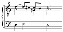 Cadencia borgoñoña en re, nótese las cuartas paralelas entre las voces superiores.[6]Play