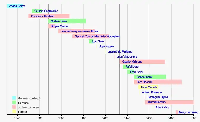 Muchos de los miembros más antiguos de la escuela mallorquina eran judíos o, sobre todo después de 1391, judeoconversos.[14]