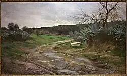 En 1881 el pintor José Pinelo Llull, tras una breve estancia en Roma, llegó a Sevilla y conectó con la pintura de Sánchez Perrier.[33] Hay que tener en cuenta que muchos pintores sevillanos completaban su formación en Italia. En Roma, los artistas hacían excursiones en los alrededores, sobre todo a Frascati, Castel Gandolfo y los alrededores del lago de Nemi. También se cultivaba mucho el paisajismo en la bahía de Nápoles y en Venecia.[34]