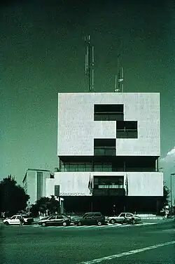 La segunda influencia de la nueva arquitectura madrileña provino del organicismo, un tipo de arquitectura inspirada en la naturaleza y las formas orgánicas —de ahí su nombre—, que buscaba una especial interrelación entre la arquitectura y su entorno natural. El principal referente de este tipo de arquitectura en la primera mitad del siglo XX fue el arquitecto estadounidense Frank Lloyd Wright, aunque hacia los años 1960 el principal foco de la arquitectura orgánica se hallaba en Escandinavia, donde se había conjugado el organicismo con ciertas características del racionalismo, en un estilo denominado neoempirismo, cuyos principales exponentes fueron Alvar Aalto, Arne Jacobsen, Sven Markelius y Jørn Utzon.[14]