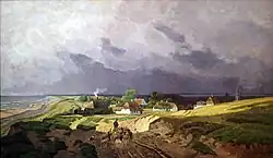 - ↑ Franz Hoffmann von Fallersleben studierte zunächst an der Düsseldorfer Malerschule und wechselte dann zur Weimarer Malerschule und wurde einer ihrer bekanntesten Vertreter. Hauptsächlich widmete er sich der Landschaftsmalerei, einschließlich des Küstenstücks.