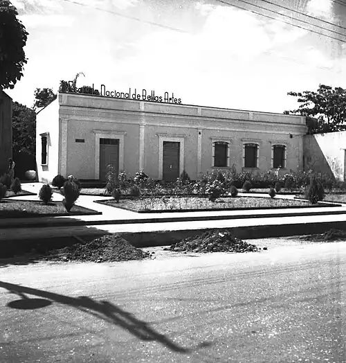 En este contexto, y como respuesta a la necesidad de una institución formal de enseñanza artística, se fundó en 1942 la Escuela Nacional de Bellas Artes. Entre sus primeros docentes se encontraban el pintor español José Gausachs, el pintor alemán George Hausdorf y la artista dominicana Celeste Woss y Gil. El currículo abarcaba materias como dibujo, pintura, escultura, artes aplicadas, bodegones y estudios de vestuario. El primer director de la institución fue el escultor español Manolo Pascual.