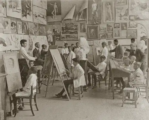 Durante las últimas décadas del siglo XIX comenzaron a surgir en Santo Domingo las primeras iniciativas organizadas para establecer una enseñanza artística sistemática. Una de ellas se concretó en 1883, con la llegada al país del artista español Juan Hernández Corredor y Cruz, quien, animado por la Sociedad Amigos de la Enseñanza, fundó una escuela de dibujo y pintura. Su taller ofrecía clases accesibles, con tres lecciones semanales, primero en la Escuela Preparatoria de Santo Domingo y, posteriormente, en su propia residencia.