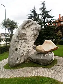 La escultura, es un gran e irregular bloque de piedra, con una placa de metal aproximadamente en el centro. No hay datos sobre su autoría ni de su fecha de inauguración. Aunque se sabe que con esta obra el Ayuntamiento homenajea al ingeniero Enrique Lafuente Gutiérrez, cuyo esfuerzo facilitó la construcción de la conocida también como autopista “Y”.[1][2]