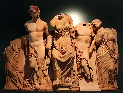 Grupo con escena mitológica, terracota, Pyrgi. -