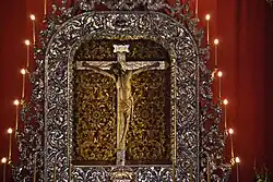 - ↑ Tiene más de 400 m², con 18 m ancho, 26 m y 5 m profundidad. En él trabajaron de forma sucesiva Alejo Fernández, Jorge Fernández, Roque Balduque, Juan Bautista Vázquez el Viejo y Pedro de Heredia.