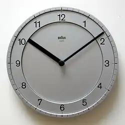 La mayoría de los relojes modernos tienen los números del 1 al 12 impresos a intervalos igualmente espaciados en torno a la periferia de la esfera con el 12 en la parte superior, que indica la hora, y en muchos modelos, sesenta puntos o líneas uniformemente espaciados en un anillo alrededor del exterior de la esfera. marca, que indica minutos y segundos. La hora se lee observando la colocación de varias "manecillas ", que salen del centro de la esfera: