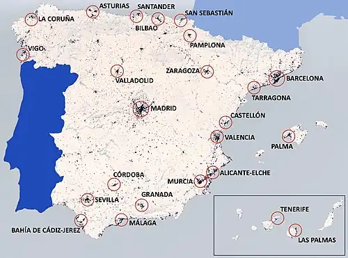 - ↑ «Principales datos anuales». AENA. 2021. Consultado el 15 de agosto de 2021. «Somos el primer operador aeroportuario del mundo con más de 293 millones de pasajeros en 2019».