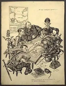La postura de Franco y su gobierno evolucionaría a lo largo del conflicto, siempre manteniéndose en una ambigua neutralidad cuando le era beneficioso para sus intereses. Así pues, tras la batalla de Francia en junio de 1940 y cuando parecía inevitable que el III Reich vencería al Reino Unido, Franco se entrevistó con Hitler en Hendaya, España ofreció al Tercer Reich la División Azul para apoyar el ataque a la URSS, se permitió el repostaje de submarinos alemanes en puertos españoles, se censuraba las noticias de derrotas alemanas en la propaganda española, los agentes alemanes de la Abwehr tenían gran libertad para trabajar en territorio español mientras se vigilaba a los británicos, etc. El 25 de noviembre de 1941, España firmó el Pacto Anti-Komintern revisado (había firmado la versión inicial el 25 de marzo de 1939), texto auspiciado por la Alemania nazi y el Imperio del Japón, al que también se había sumado la Italia fascista y otros países próximos al Eje.[7]