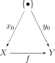 La clase de todos los espacios puntados forma una categoría Arriba con punto base preservando mapas continuos como morfismos . Otra forma de pensar en esta categoría es como la categoría de coma, ( arriba ) donde es cualquier espacio de un punto y Top es la categoría de espacios topológicos . (Esto también se llama una sobrecategoría denotada arriba ) Los objetos en esta categoría son mapas continuos Se puede pensar que tales mapas seleccionan un punto base en Los morfismos en ( Top ) son morfismos en Top para los que conmuta el siguiente diagrama: