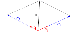v1 y v2 son base de un plano, si hubiese dependencia lineal (alineados), la cuadrícula no podría generarse.