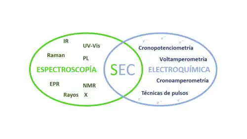 La espectroelectroquímica (SEC) es un conjunto de técnicas de análisis multi-respuesta en las que a través de un único experimento se obtiene información química complementaria de carácter electroquímico y espectroscópico sobre un determinado sistema químico. La espectroelectroquímica proporciona una visión global de los fenómenos que tienen lugar durante un proceso electródico.[1][2][3][4][5] El primer experimento espectroelectroquímico fue realizado por Kuwana en 1964.[6]