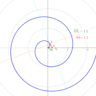 Esta curva se distingue de la espiral logarítmica por el hecho de que, vueltas sucesivas de la misma tienen distancias de separación constantes (iguales a 2πb si θ es medido en radianes),[2] mientras que en una espiral logarítmica la separación está dada por una progresión geométrica. (Las distancias referidas son medidas sobre una recta que pasa por el centro de la espiral)
