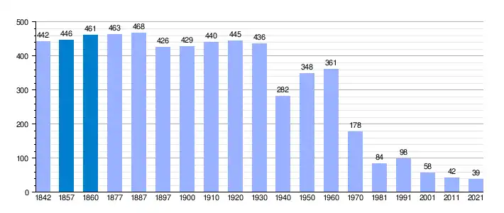 | Gráfica de evolución demográfica de Esplegares[3] entre 1842 y 2021 |